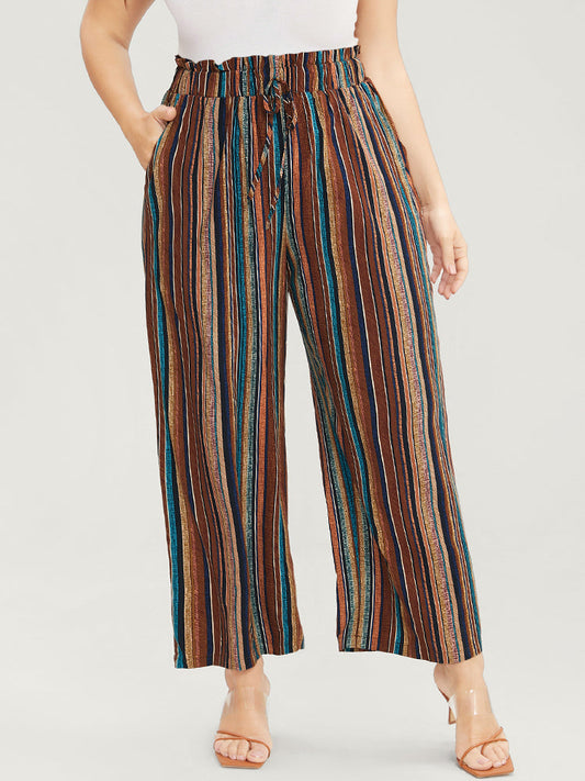Striped Contrast Paperbag Waist Ties Up Pocket Pants