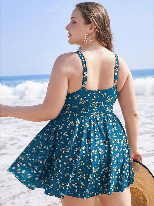 Ditsy Floral Sculpt Waist A Line Swim Dress