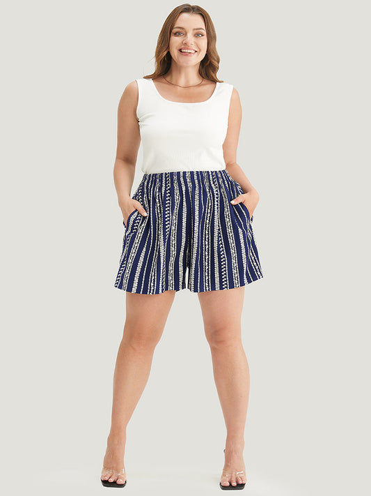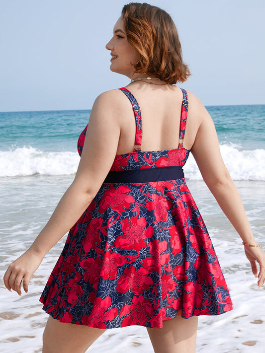 Bandana Print Belted Pocket Flutter Surplice Neck Knee Dress