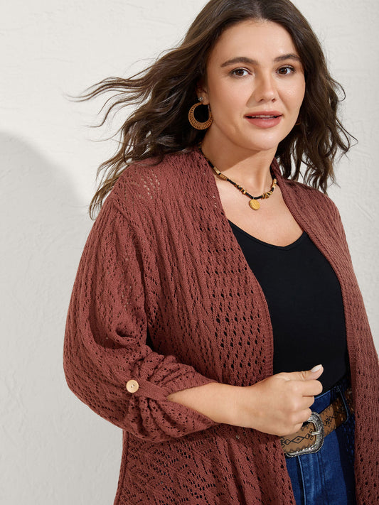 Textured Cut-Out Asymmetrical Knit Cardigan