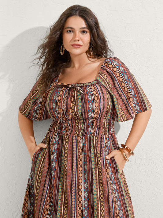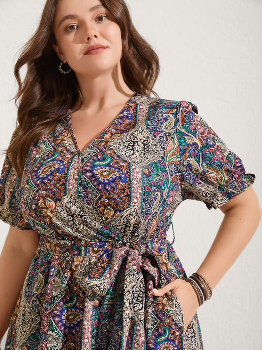 Floral Print Ruffled Sleeve V-Neck Midi Dress