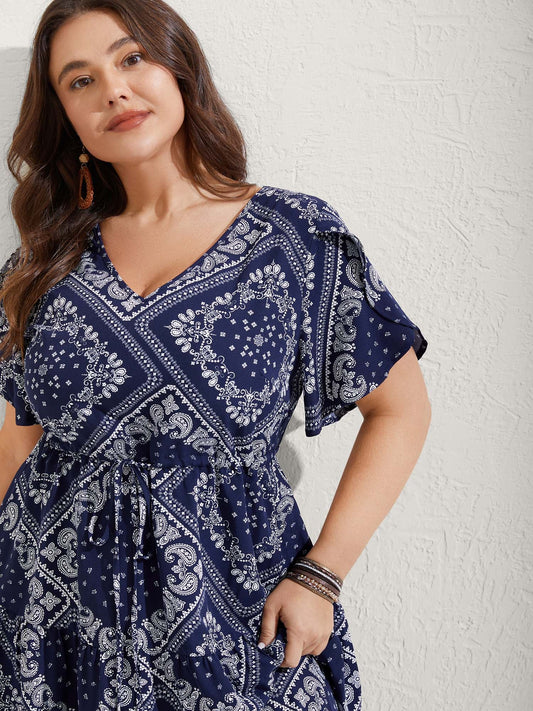 Lace Neck Flowy Sleeve Solid T-Shirt
