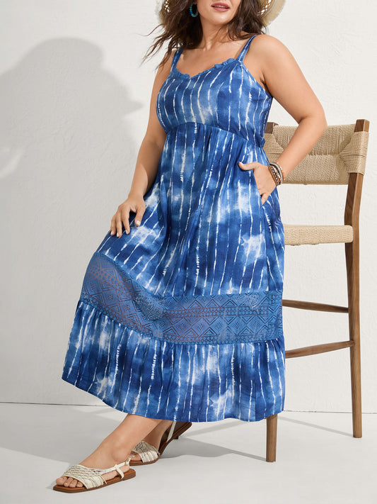 Tie-Dye Lace Trim Cami Midi Dress