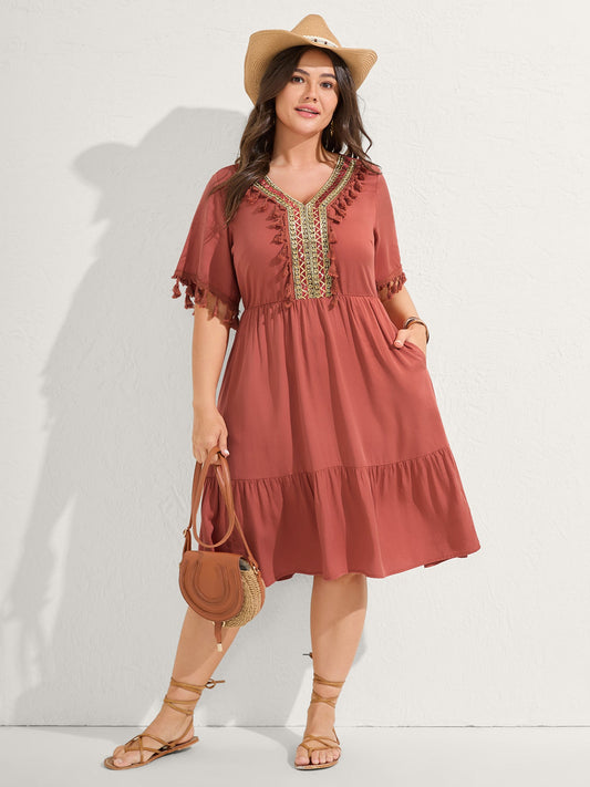 Pure Cotton Tassels Lace Midi Dress