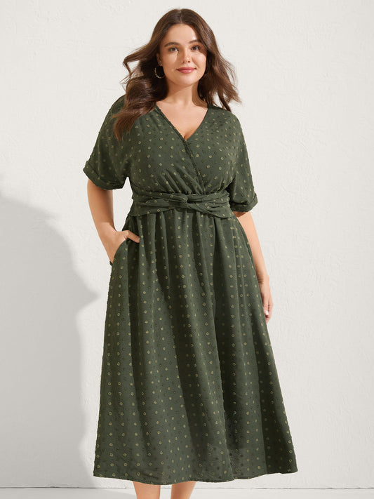 Textured Pleated Twist Waist Midi Dress