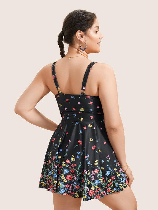 Ditsy Floral Lined Spaghetti Strap Swim Dress
