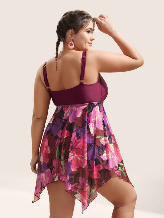 Floral Patchwork Tummy Control Ruched Swim Dress