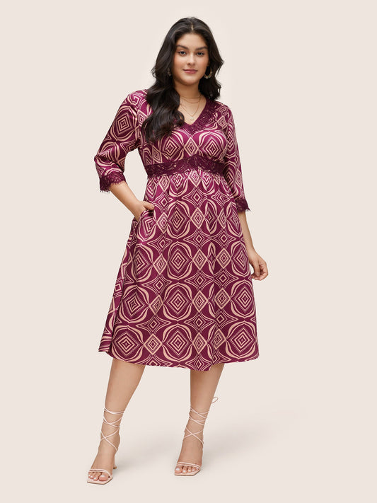 Geometric Lace Panel Patchwork Elastic Waist Dress