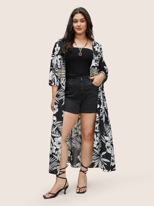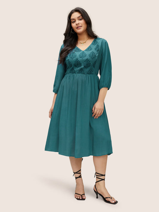 Plants Graphic Embroidered Lantern Sleeve Dress