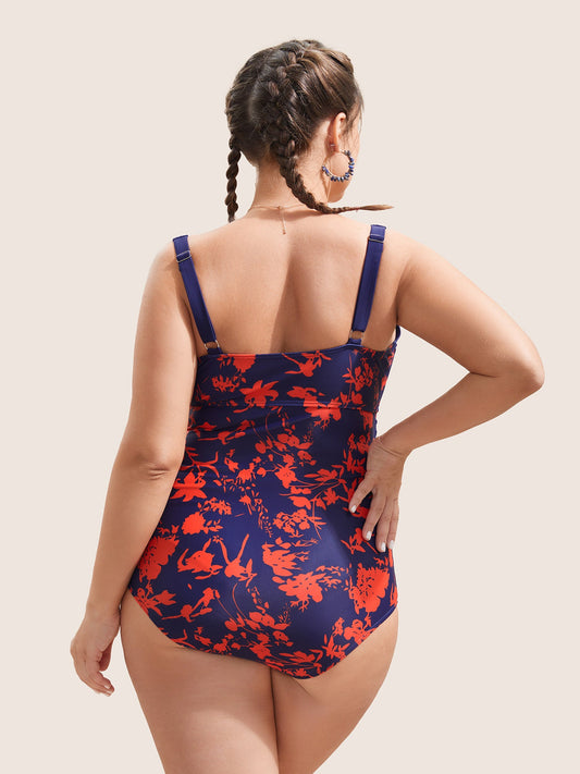 Silhouette Floral Ruched Buckle Detail One Piece Swimsuit