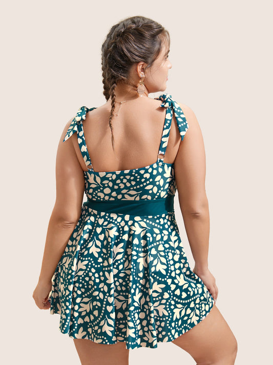 Silhouette Floral Print Bowknot Detail Swim Dress