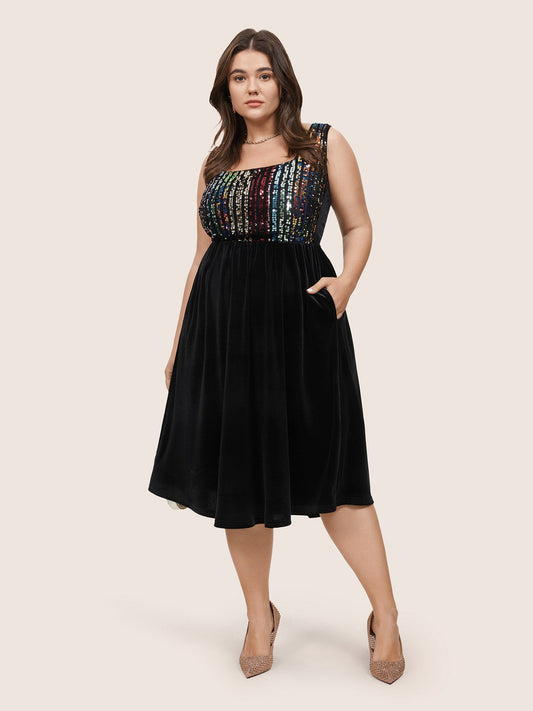 Colored Sequin Velvet Ruffle Hem Tank Dress