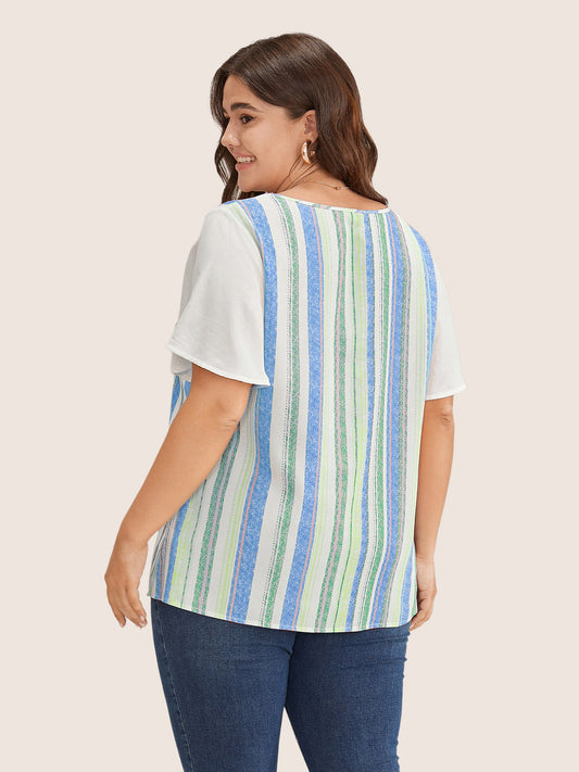 Striped Contrast Patchwork Ruffle Sleeve Blouse