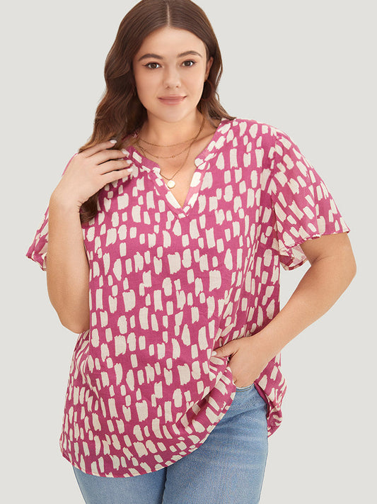 Geometric Print Flutter Hem Pocket Tassels Dress