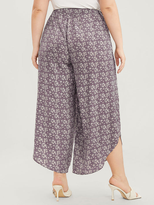 Ditsy Floral Knotted Front Elastic Waist Split Pants