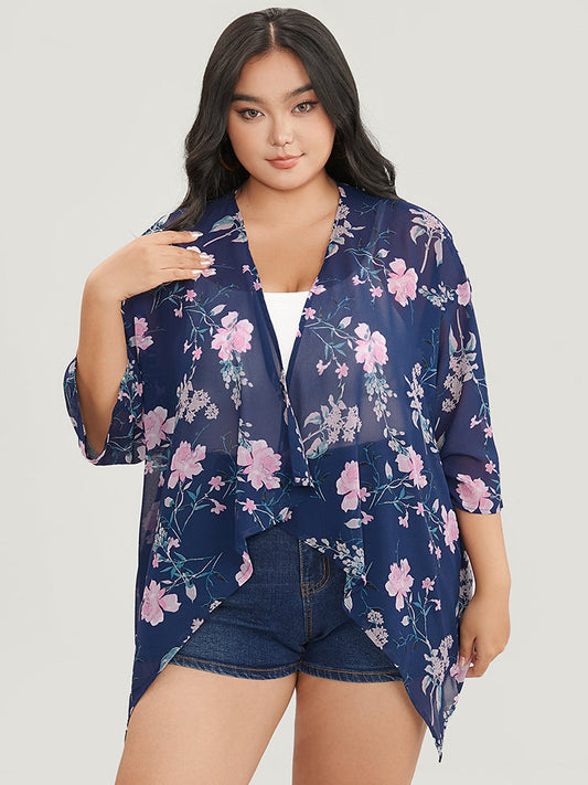 Floral Print Asymmetrical Hem Open Front Cover Up