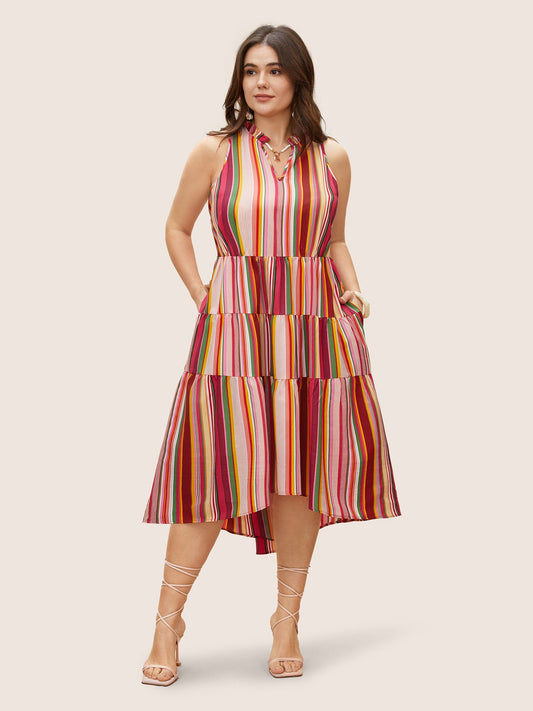 Striped Frill Trim Ruffle Layered Hem Sleeveless Dress