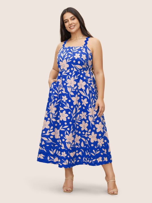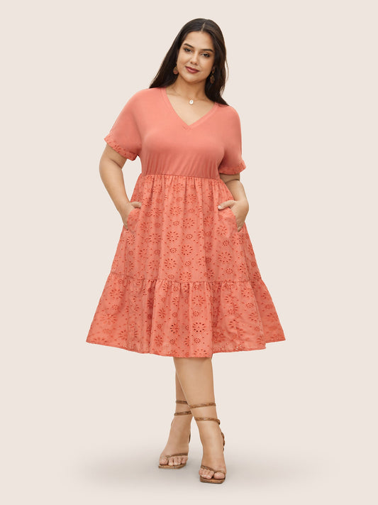 Plisse Broderie Anglaise Patchwork Ruffle Hem Dress