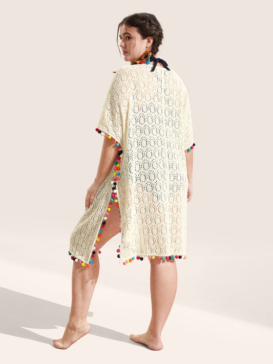 Colored Fluffy Ball Trim Tie Knot Swim Cover Up
