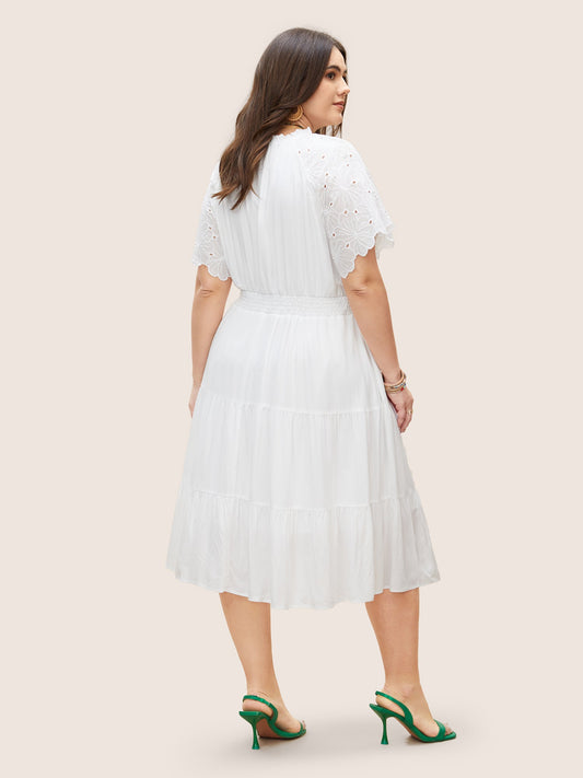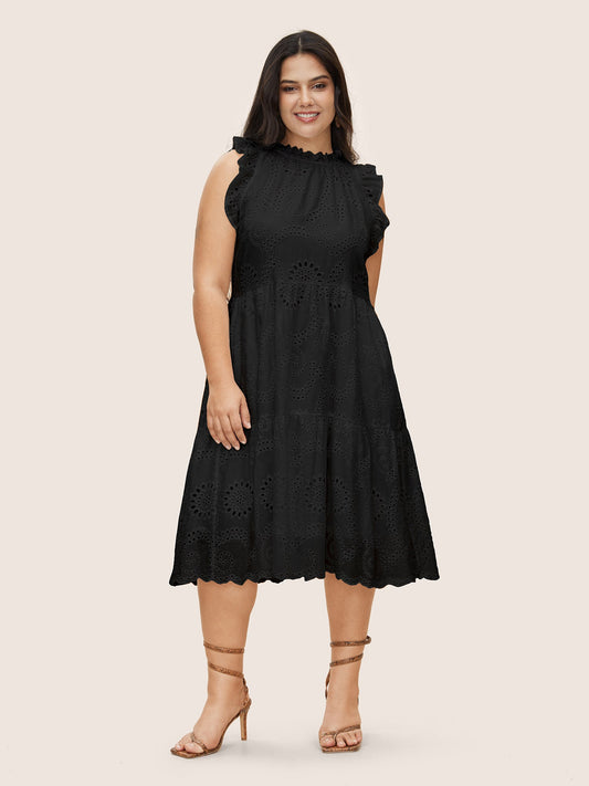 Mock Neck Broderie Anglaise Ruffle Trim Dress