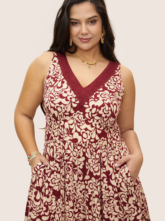 Silhouette Floral Print Eyelet Lace Sleeveless Dress