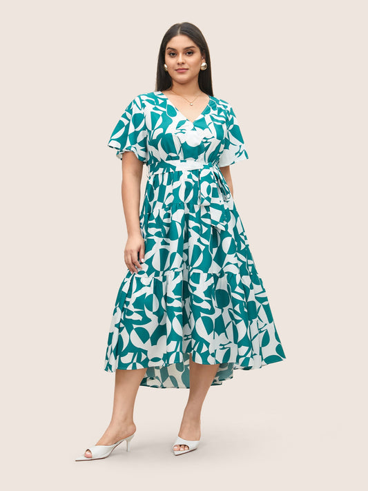 Geometric Overlap Collar Ruffle Layered Hem Dress