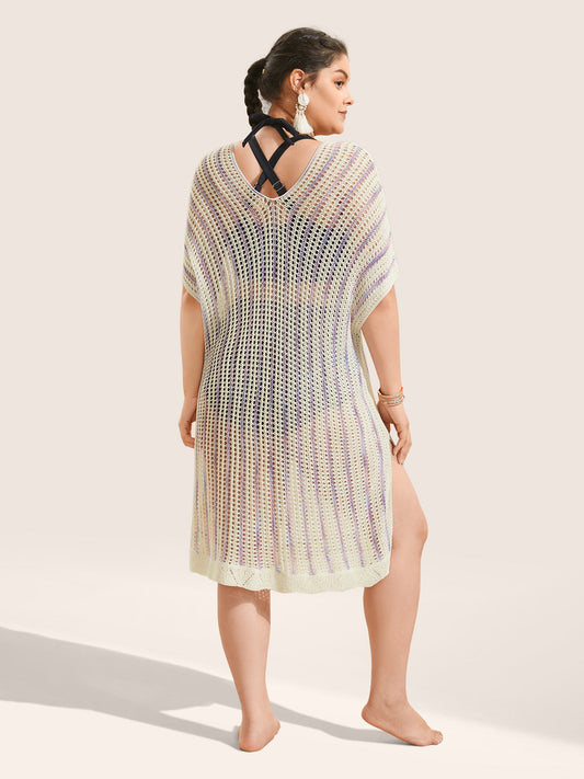 Contrast Heather Pointelle Knit Batwing Sleeve Swim Cover Up