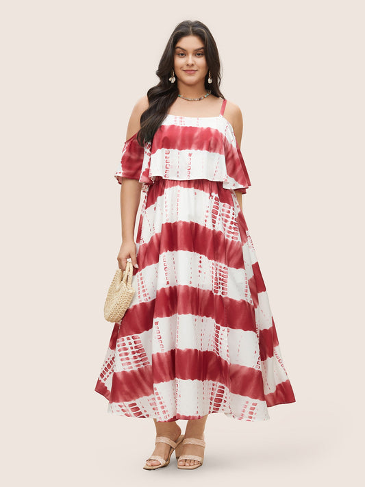 Tie Dye Cold Shoulder Flutter Layered Dress