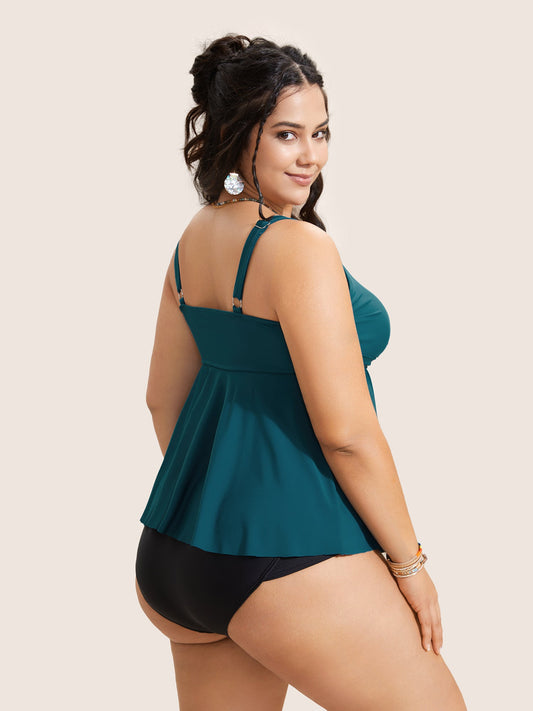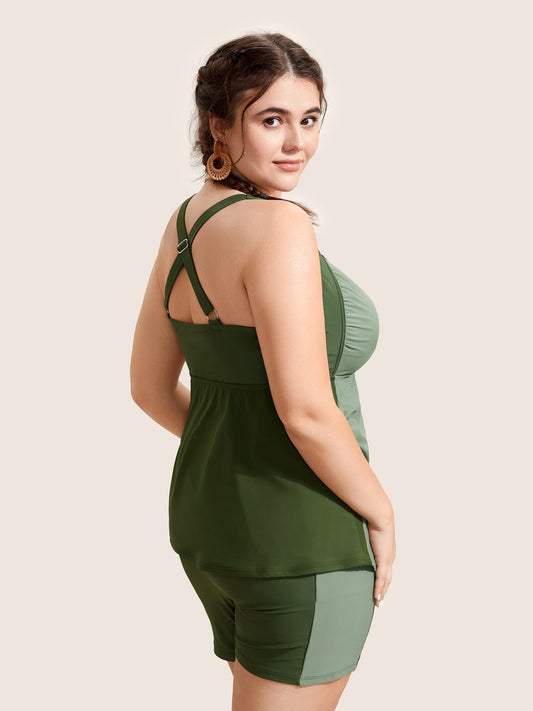 U Neck Plain Crossover Gathered Swim Top