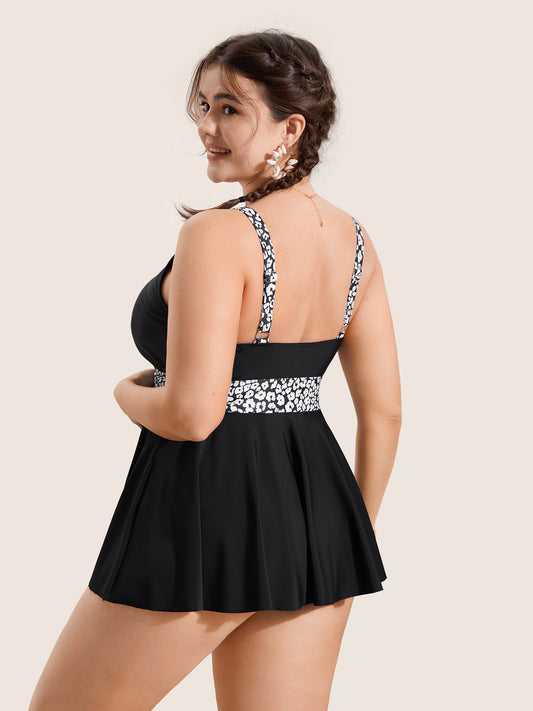 Leopard Print Patchwork V Neck Swim Top