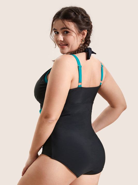 Two Tone Metal Chain Detail One Piece Swimsuit