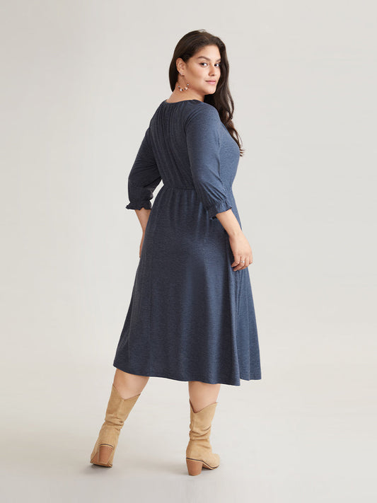 Floral Embroidered Knot Neck Lantern Sleeve Dress