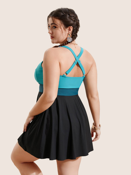 Floral Print Elastic Waist Pocket Halter Neck Dress