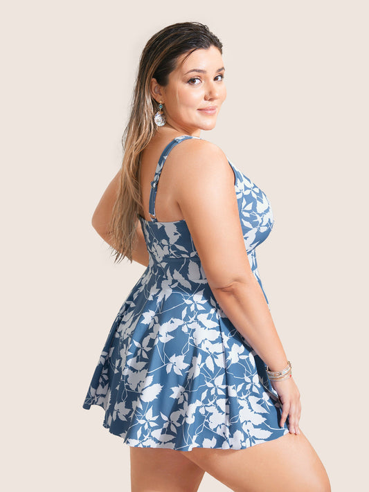 Silhouette Floral Print Gathered Drawstring Swim Dress