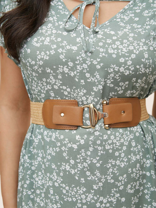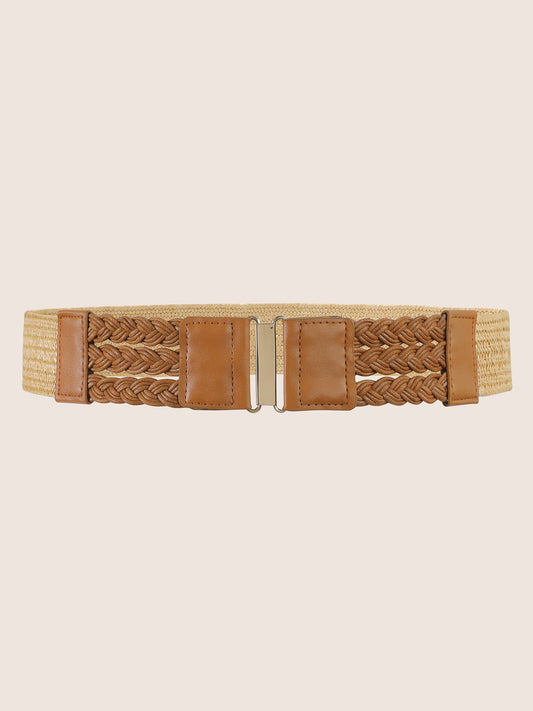 Straw Weave Metal Buckle Detail Elastic Belt