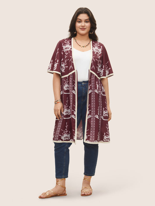Boho Print Lace Patchwork Ties Gathered Kimono