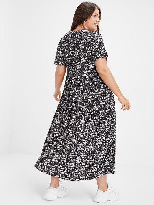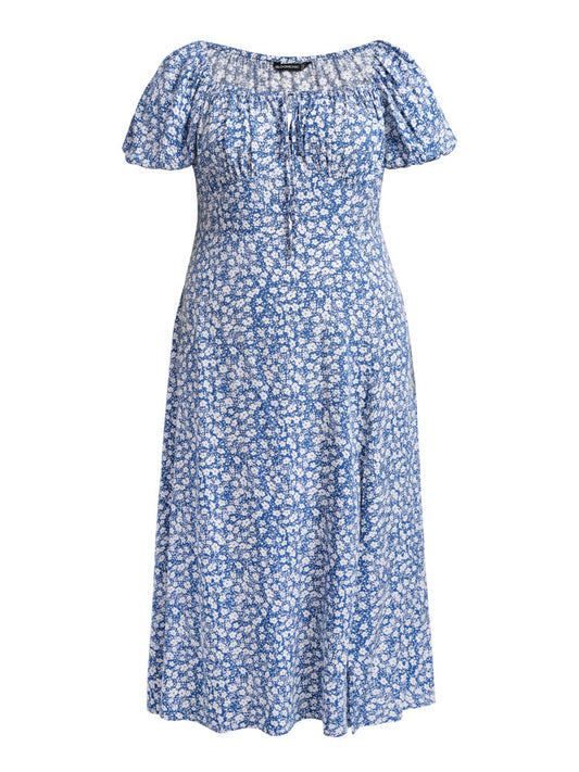 Ditsy Floral Square Neck Split Maxi Dress
