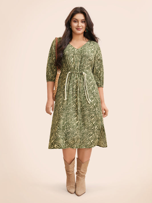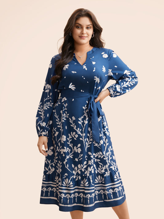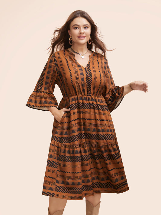 Notched Bandana Geometric Ruffle Sleeve Dress