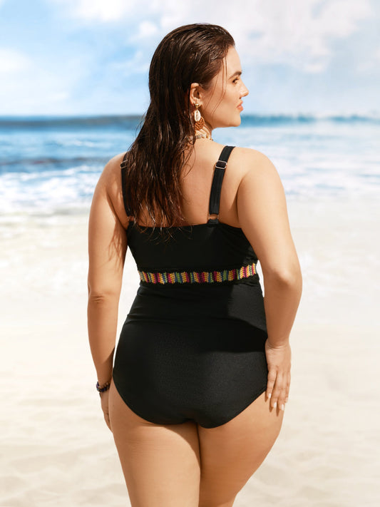 Keyhole Contrast Webbing Ruched One Piece Swimsuit