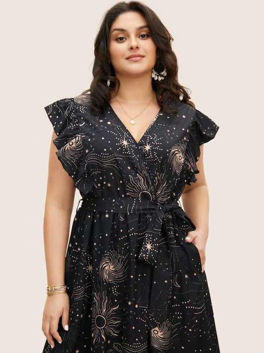 Moon & Star Ruffle Cap Sleeve Maxi Dress