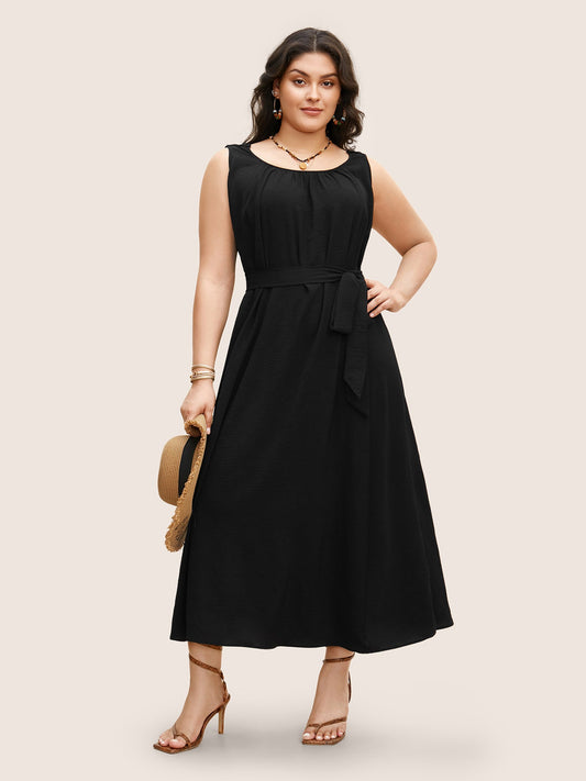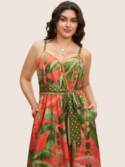 Heart Neckline Tropical Print Tie Knot Midi Dress