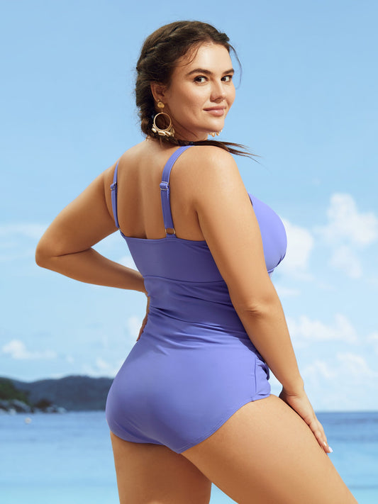 Square Neck Tie Knot Gathered One Piece Swimsuit