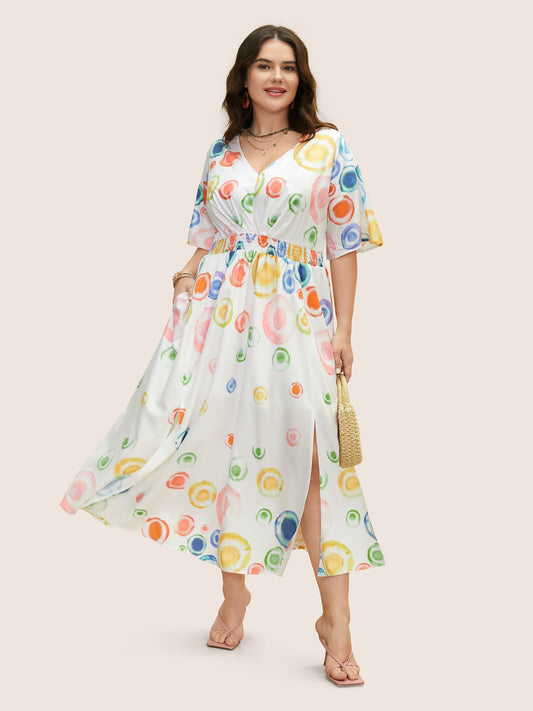 Colored Colorblock Shirred Split Hem Maxi Dress