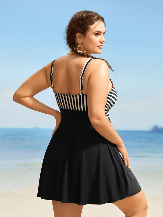 Striped Patchwork Wrap Tie Knot Swim Dress