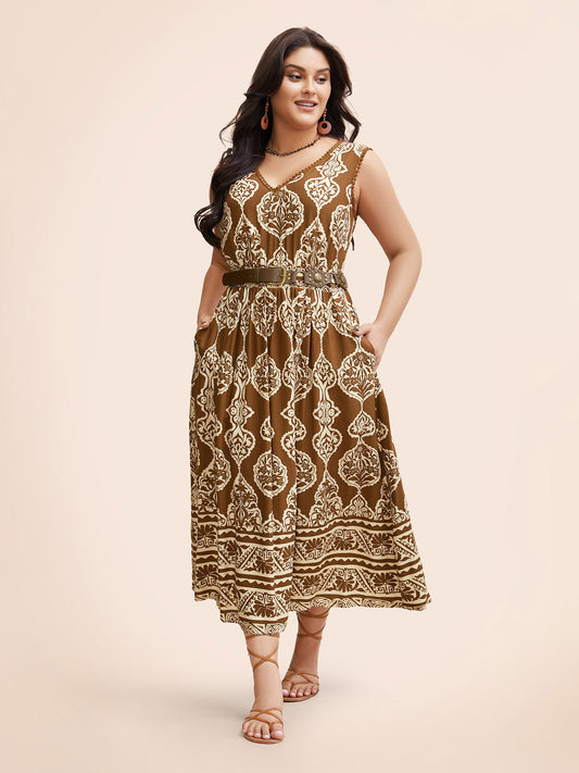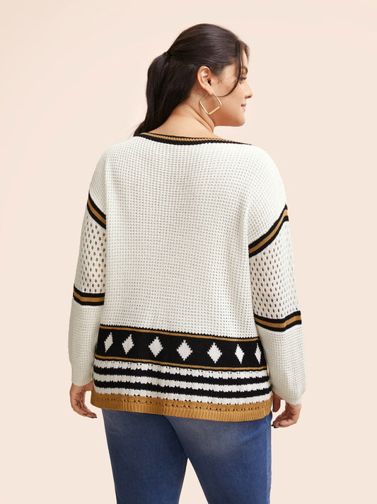 Cotton Geometric Striped Drop Shoulder Sleeve Pullover