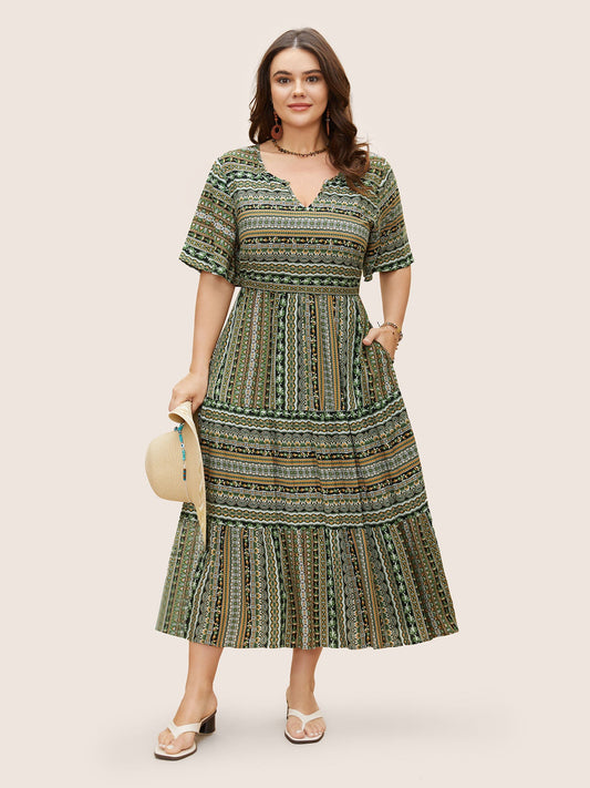 Rayon Bandana Print Ruffle Layered Hem Dress