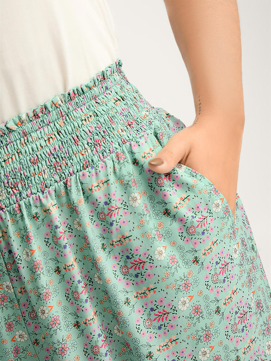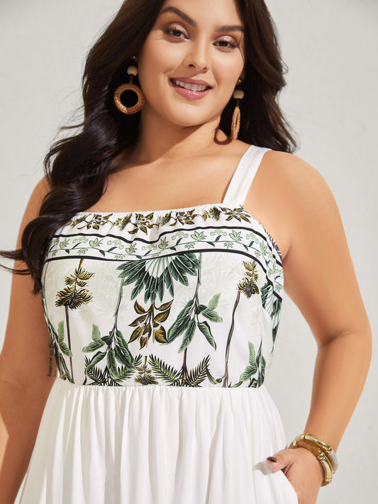 Tropical Leaf Print Lace Stretchy Midi Dress