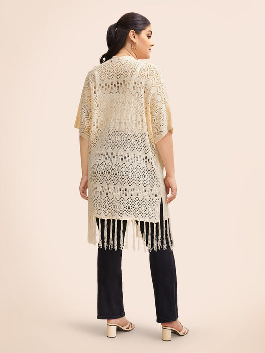 Kimono Collar Cut Out Tassel Trim Cardigan