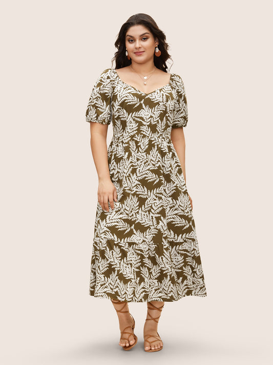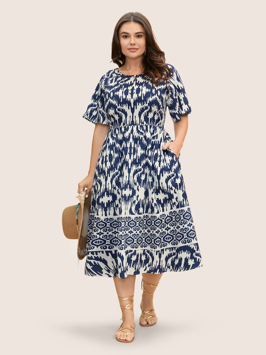 Bandana Keyhole Ruffle Sleeve Midi Dress
