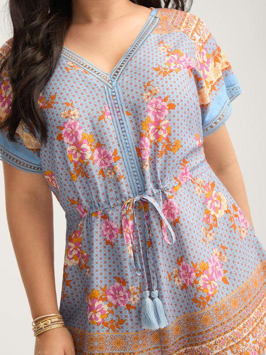 Rayon Lace Trim Button Placket Flutter Maxi Dress
